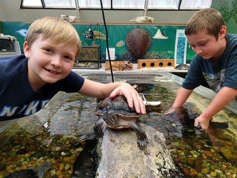 Meeting animal ambassadors, including reptiles, amphibians, and mammals!